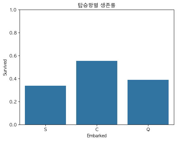 plt.title("탑승항별 생존률")