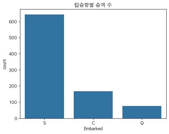 plt.title("탑승항별 승객 수")