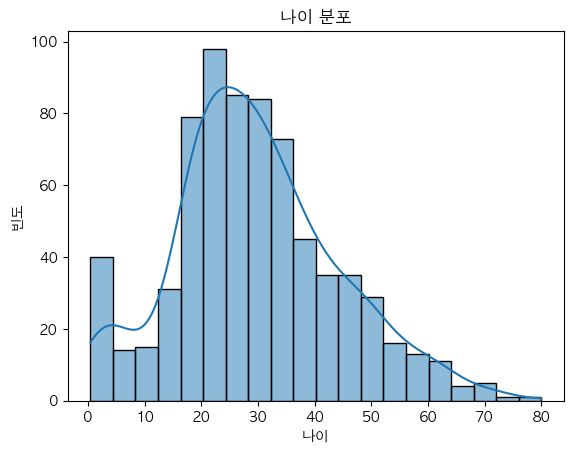 plt.title("나이 분포")