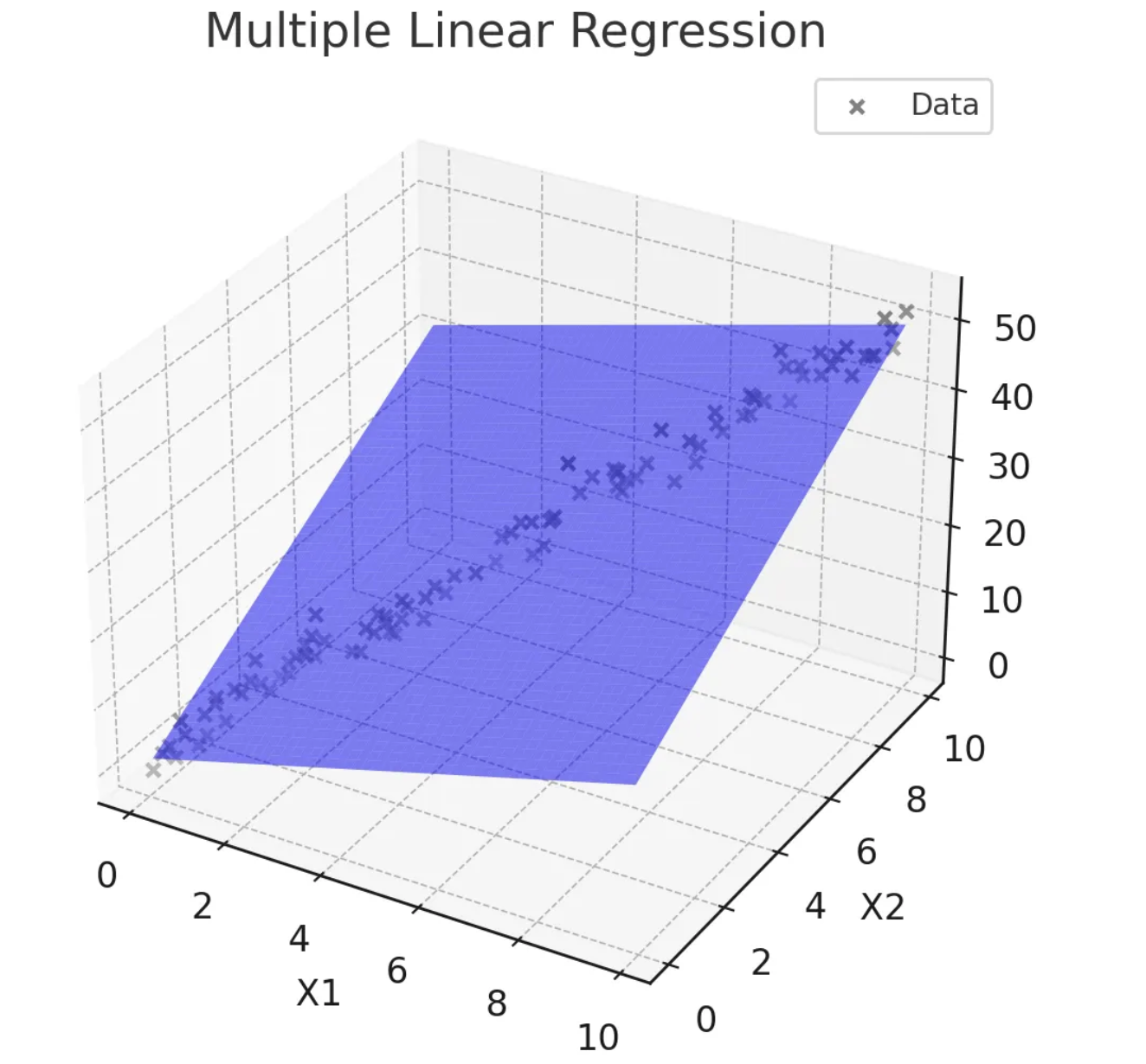 - 두 개 이상의 독립 변수(x1, x2 ... )와 하나의 종속 변수(y) 간의 관계를 모델링.