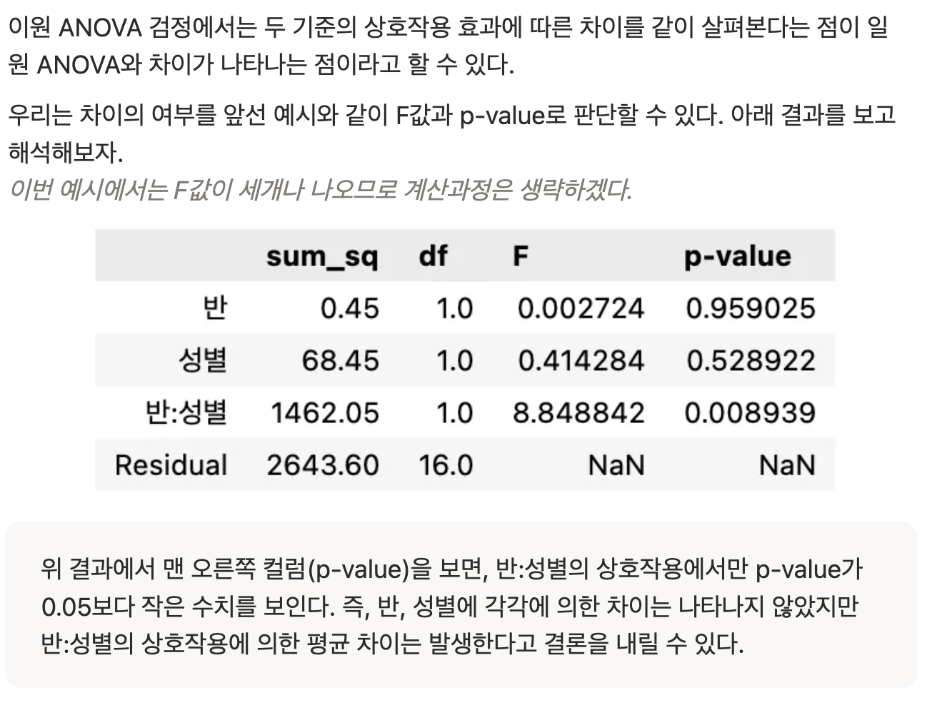 두 기준의 상호작용 효과로 차이가 발생하는지를 확인