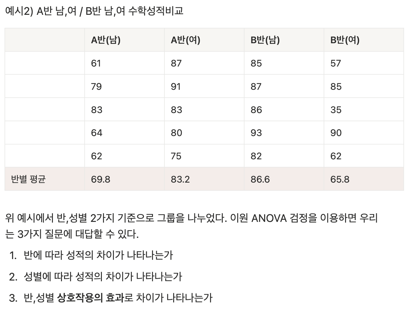 이원 ANOVA (two-way ANOVA)