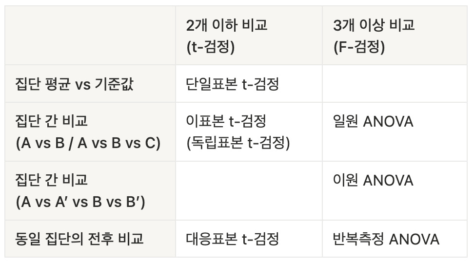 집단이 3개 이상의 집단의 평균을 비교할 때 사용