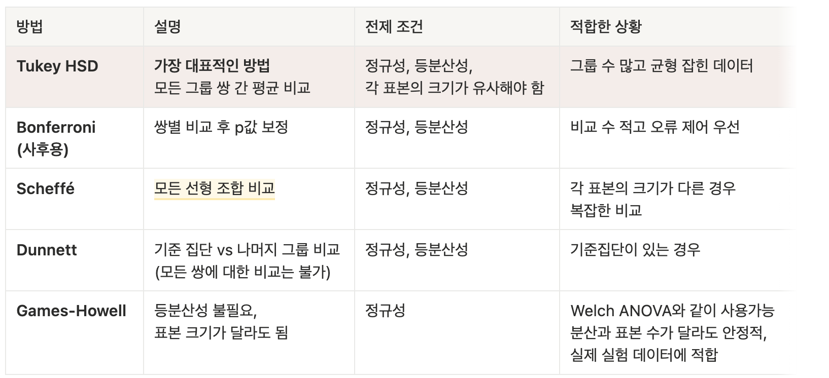 사후검정 방법 참고 ▼