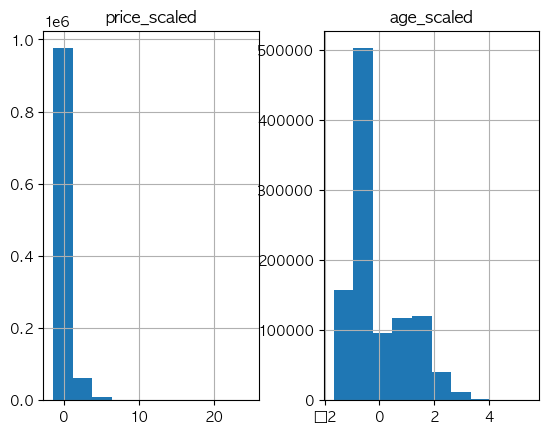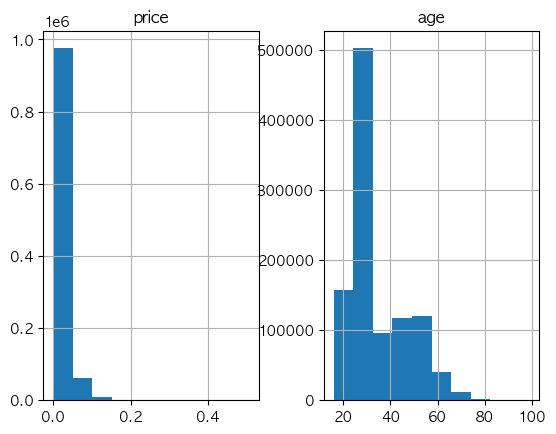 # 이상치가 제거된 가격/나이 히스토그램 뽑아보기