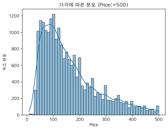 # price<=500 : 대략적인 분포를 보기 위해 500 이하인 것으로 확인했다.