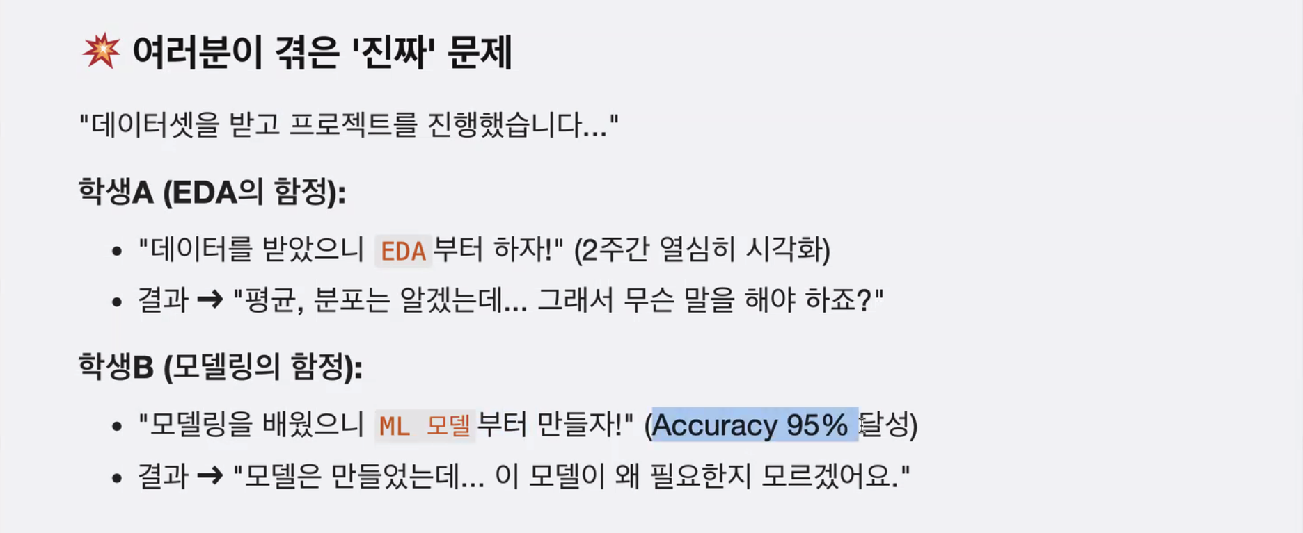 모든 EDA, 모델링, 보고서는 "이 다음엔 무엇을 해야 하는가?"에 대한 답을 해야 함!