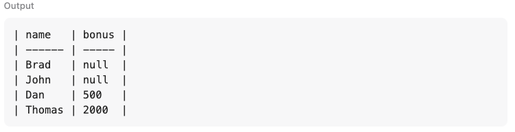 LEFT JOIN Bonus as b