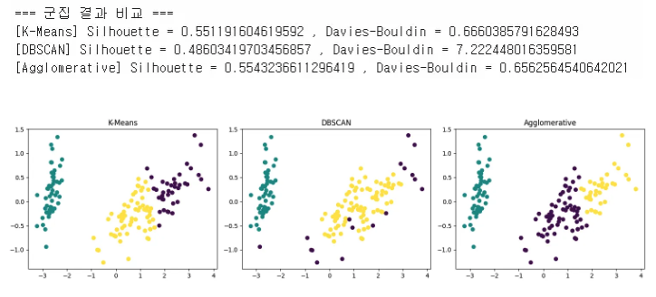 print("=== 군집 결과 비교 ===")