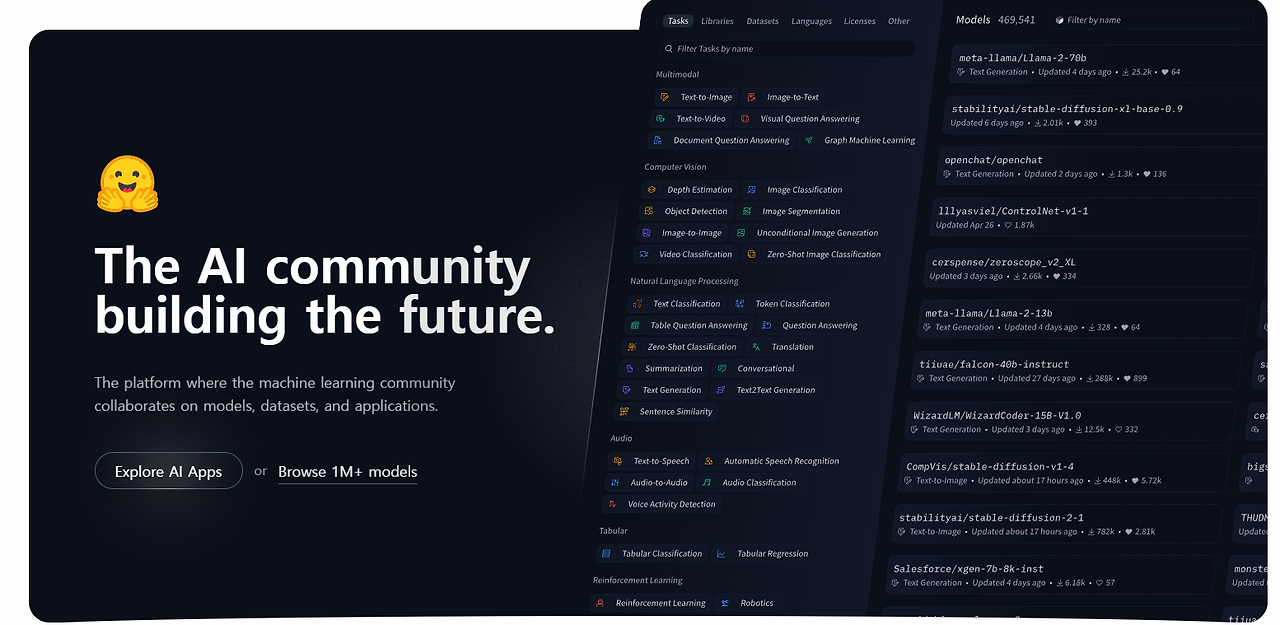 Hugging Face is a company that provides an open-source community and a platform of