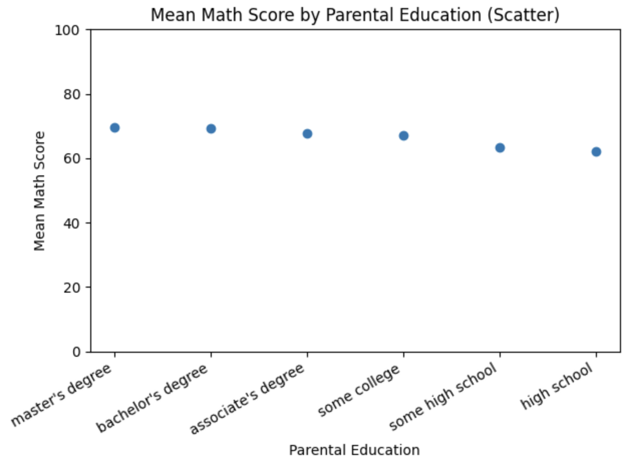 문제6: 부모 학력별 수학 평균 단일 산점도로 나타내기