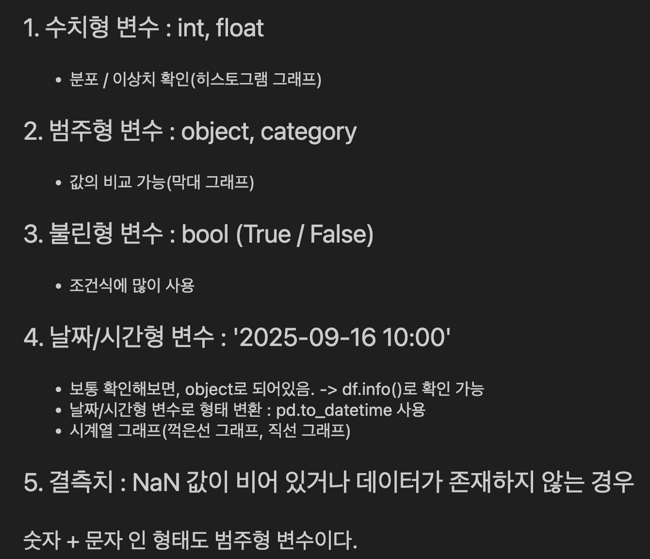 3️⃣ 판다스 주요 데이터 타입은 뭐가 있지?