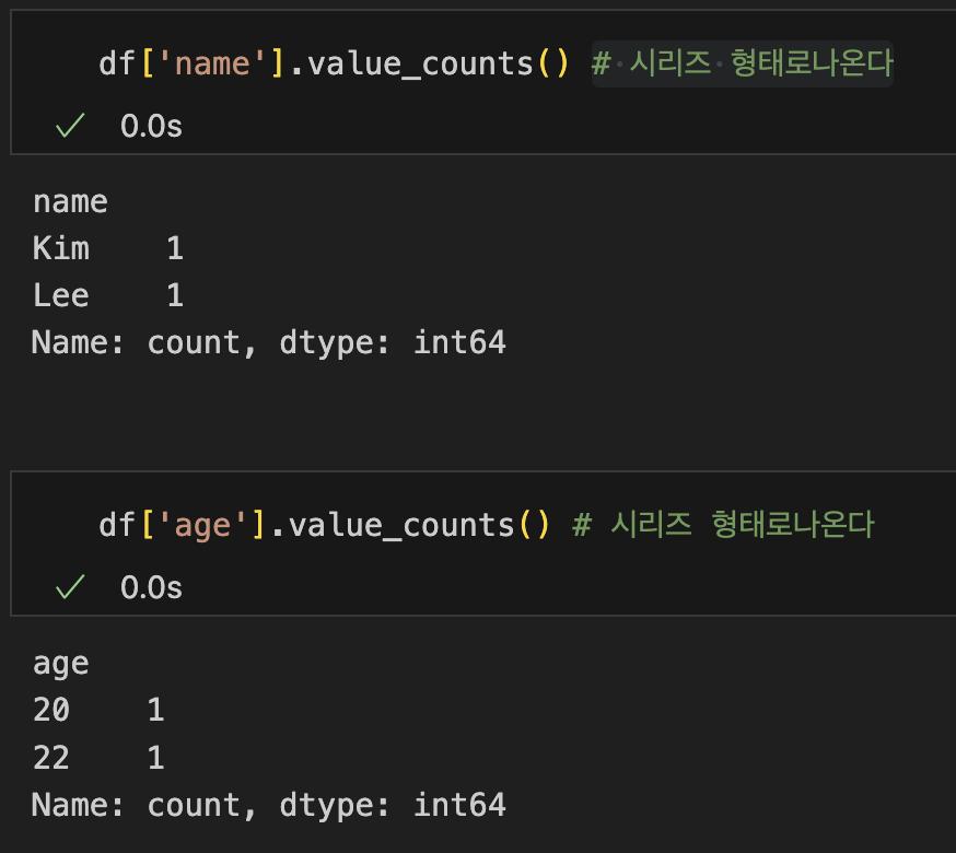 한 컬럼만 고를 때, df['age'] 하면 Series 형태로,