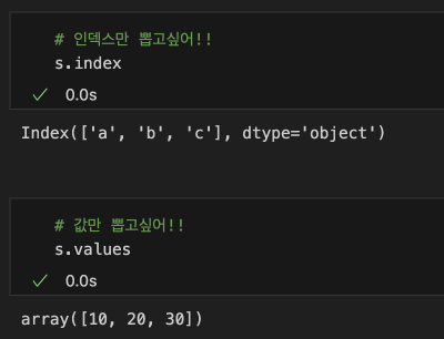 ✅ 인덱스와 값만 존재한다. 컬러명이 없음!! 있으면 그건 데이터프레임 이다!