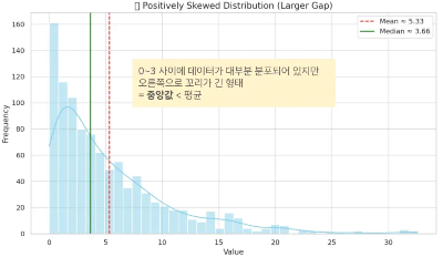 | 십분위수 (Deciles) | 데이터를 10등분 ➡️ 예: 소득분위 (1분위: 하위 10%, 10분위: 상위10%) |