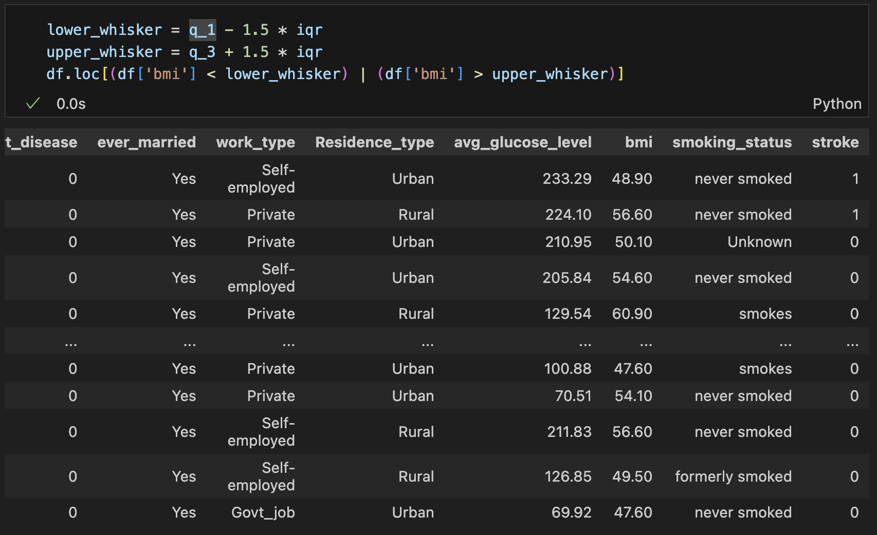 - whisker(하단) : Q1 - ( 1.5 * IQR )