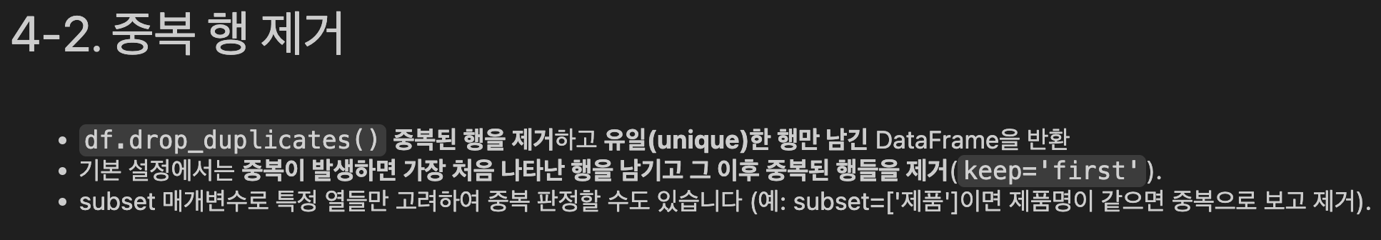 4️⃣ 중복 제거는 반드시 해야돼!