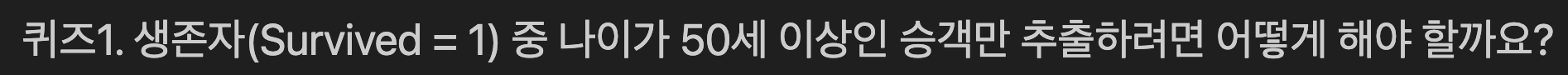 print("생존한 50세 이상의 승객 수는", len(result),"명 입니다.")