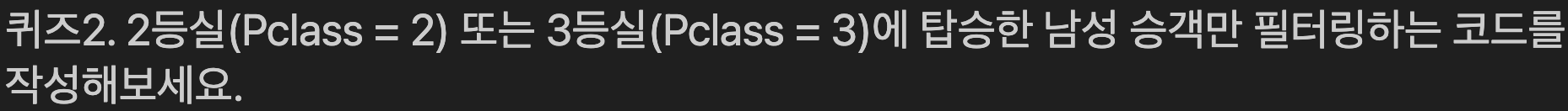 print(f'2등실 또는 3등실 중 남성 승객의 수는 {len(result)}명 입니다.')