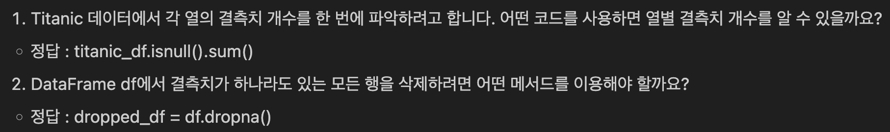 1. df의 결측치와 그 개수 확인 ➡️ df.isnull().sum()